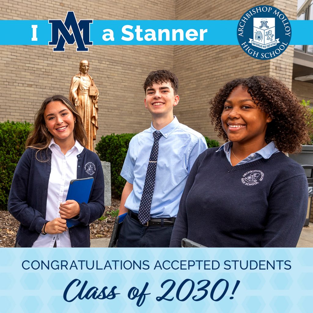 On behalf of everyone at Archbishop Molloy High School, congratulations to our newly accepted students! We are excited to welcome the Class of 2030 to our Molloy family! We look forward to seeing our new Stanners in March at our Freshman Welcome Event, over the summer at Freshman Camp, and in September as they officially begin their high school journey. Once again, congratulations, and Go Stanners!