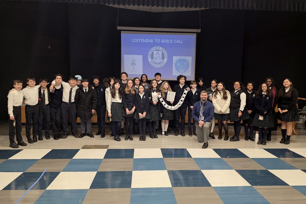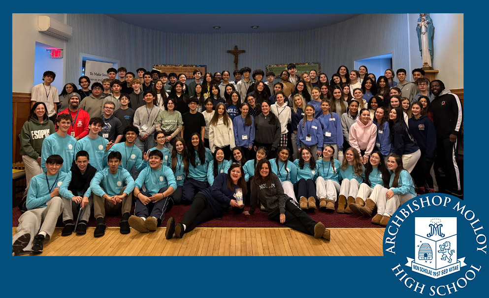 On Thursday, January 15th, eighth graders from Our Lady of Mercy Catholic Academy visited Archbishop Molloy High School for a day retreat, led by Campus Ministry! The retreat focused on the theme of “Listening to God’s Call” and how these eighth graders can discern what God is calling them to do as they prepare to graduate and begin their high school careers. The eighth graders were led by four of our outstanding Stanner retreat leaders. Together, they shared prayer, reflections, and took part in challenges that brought the theme of “Listening to God’s Call” to life. We truly hope that God calls many of them to Molloy next year as members of the Class of 2030!