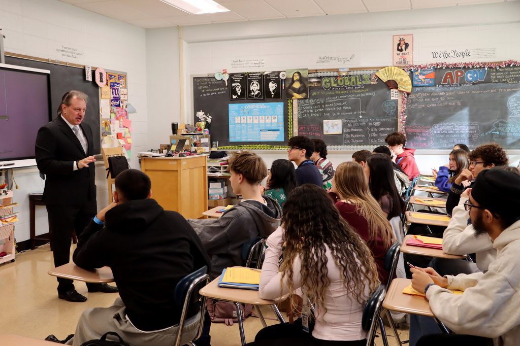 On December 18th, NY State Senator Joseph Addabbo Jr. ’82 visited Molloy once again to serve as a guest speaker in several government and social studies classes throughout the day! Sen. Addabbo discussed the importance of civic engagement by young people and the positive impact their participation can create in their communities. He followed his presentation in each class with a lengthy Q&A, during which he answered a variety of questions from students. Thank you, Senator Addabbo, for continuing to make time for our students!