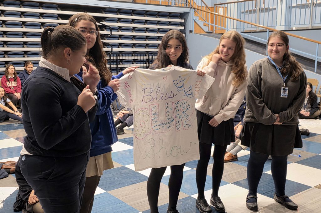 On Thursday, January 8th, the Stanner Players participated in an after school retreat. The afternoon was centered around the theme and Marist pillar of “Family Spirit.” The Stanner Players explored how they can bring the pillar of Family Spirit to what they do on and off stage. Over the course of the afternoon, the Stanner Players prayed together, shared reflections, and took part in a variety of team-building challenges. The Stanner Players also welcomed their music director, Esther Chung, and choreographer, Taylor Garcia-Lawson ’19, as well as alumni guest Ché Negron ’19 to lead part of the retreat, illustrating how the bonds formed in Molloy’s theater last well beyond graduation. Family Spirit came to life yesterday afternoon and is clearly being lived out by each and every one of our Stanner Players. Campus Minister for Retreats Mr. Corrado shares, “It was truly a blessing to spend time being present with God and these amazing Stanners!”