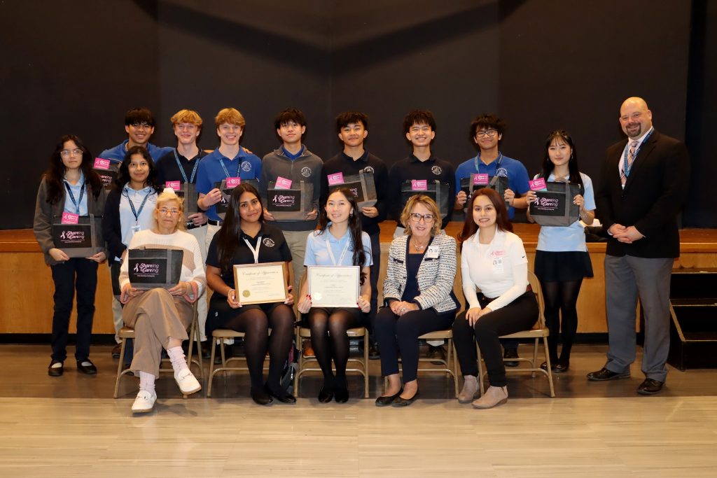 Earlier this month, Anna Kril, President and Founder of the breast cancer foundation SHAREing & CAREing, visited Molloy to speak with members of the Knitting & Crafts Club. During her presentation, she shared how the care baskets her foundation distributes to women undergoing breast cancer treatment during the holiday season each included a pipe cleaner flower made and donated by club members in October.