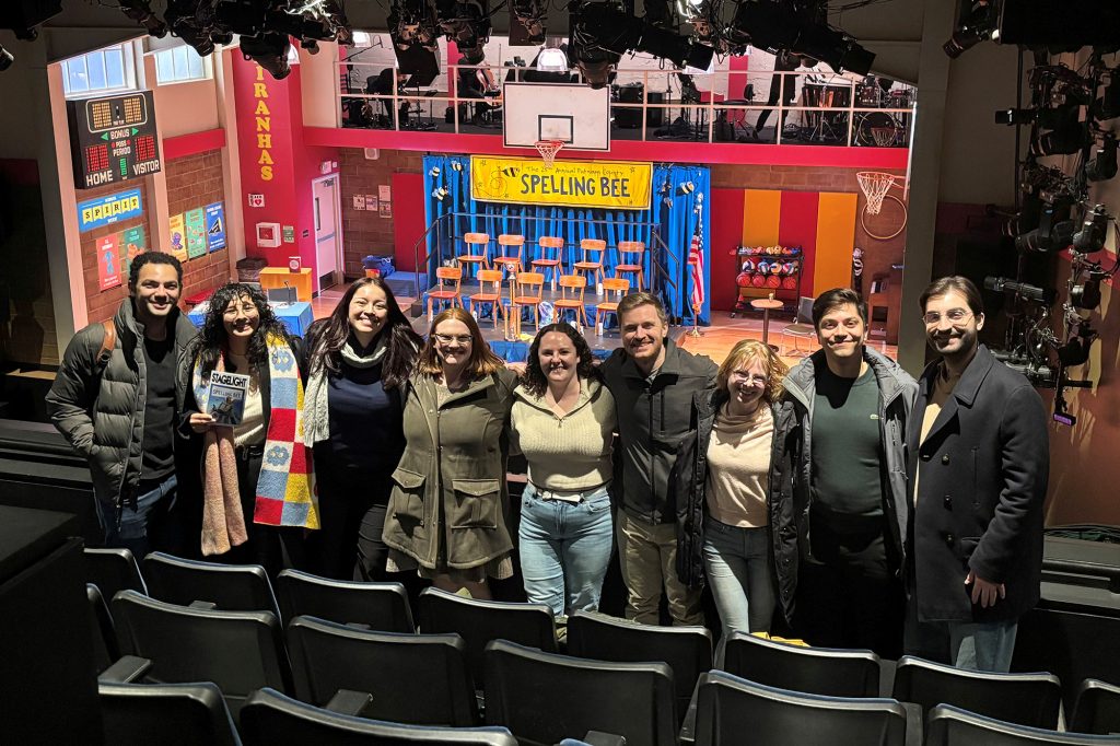 Last week, several Stanner Player alumni who performed in the 2016 Molloy production of the musical “The 25th Annual Putnam County Spelling Bee” met up to watch the current off-Broadway production. Mr. Chris Autera ’16, Alex Celedon ’19, Sal DiPaola ’16, Niamh Girdusky ’16, Ché Negron ’19, Catherine Nolty ’16, Sarah Quispe ’19, Stephen Velez ’19, and director Ms. Shannon Winters ’06. The cast and crew in attendance enjoyed the nostalgia of the show and reminiscing over their time in the Ralph DeChiaro Theater, particularly missing those Stanner Players unable to join!