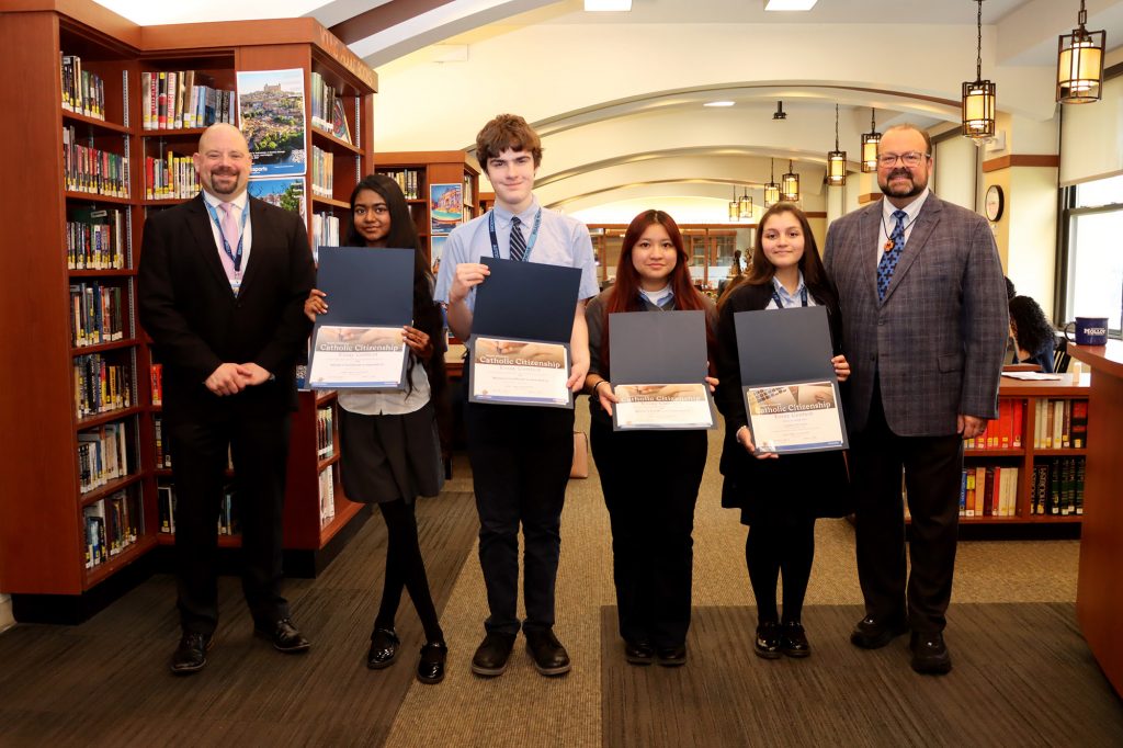 Congratulations to Christopher Elorriagia ’27, Angelina Fontana ’28, Kaitlyn Elisse Garcia ’28, and Isabella Lall ’29 on winning this year’s Knights of Columbus (Juniper Valley Council) Catholic Citizenship Essay Contest! Each winner received a certificate and cash prize.