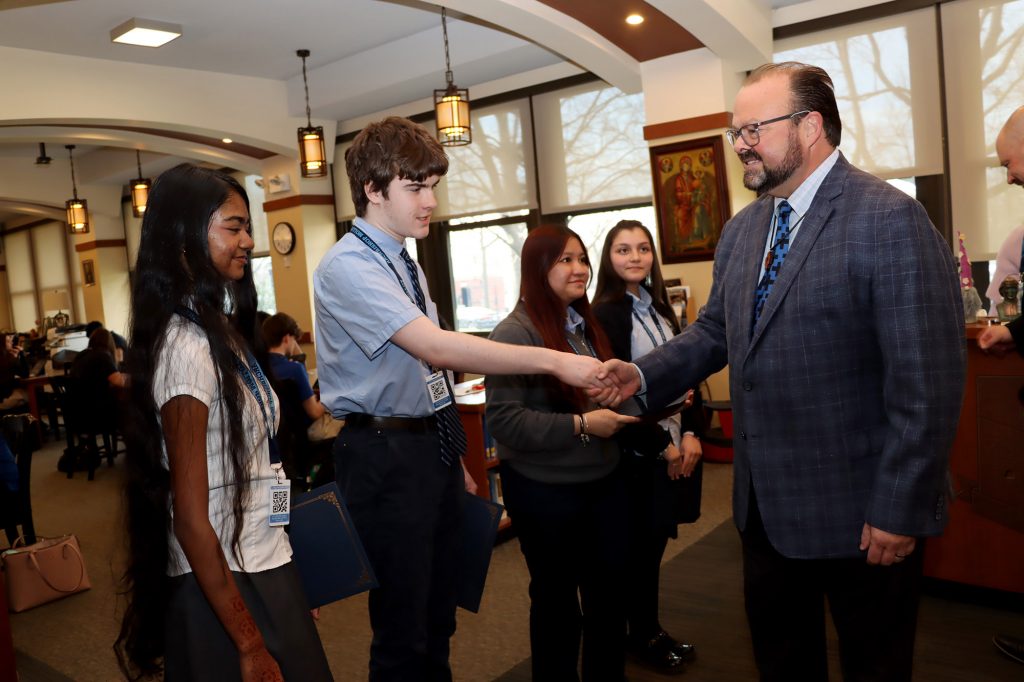 Molloy thanks the Knights of Columbus and alumnus Rob Schnell ‘79 for offering this opportunity to our students.