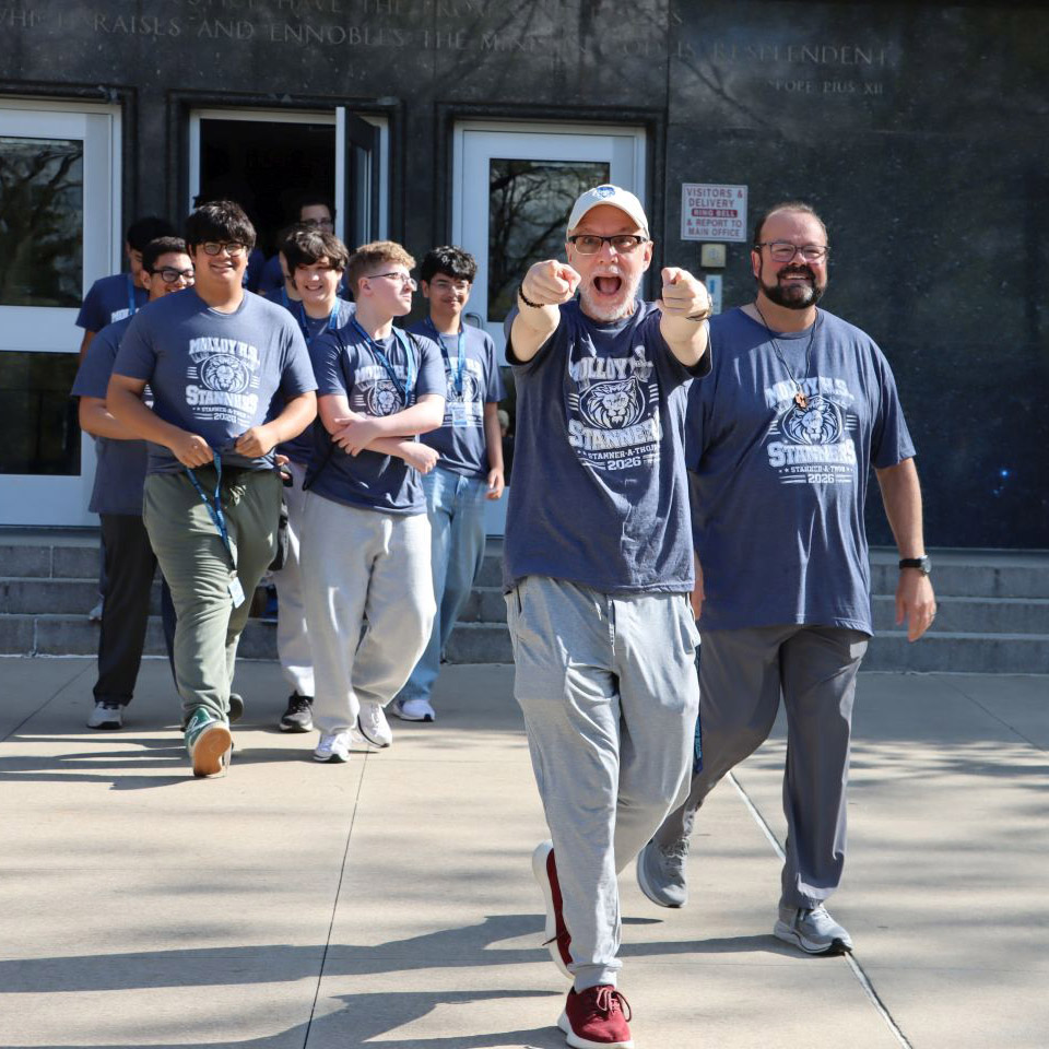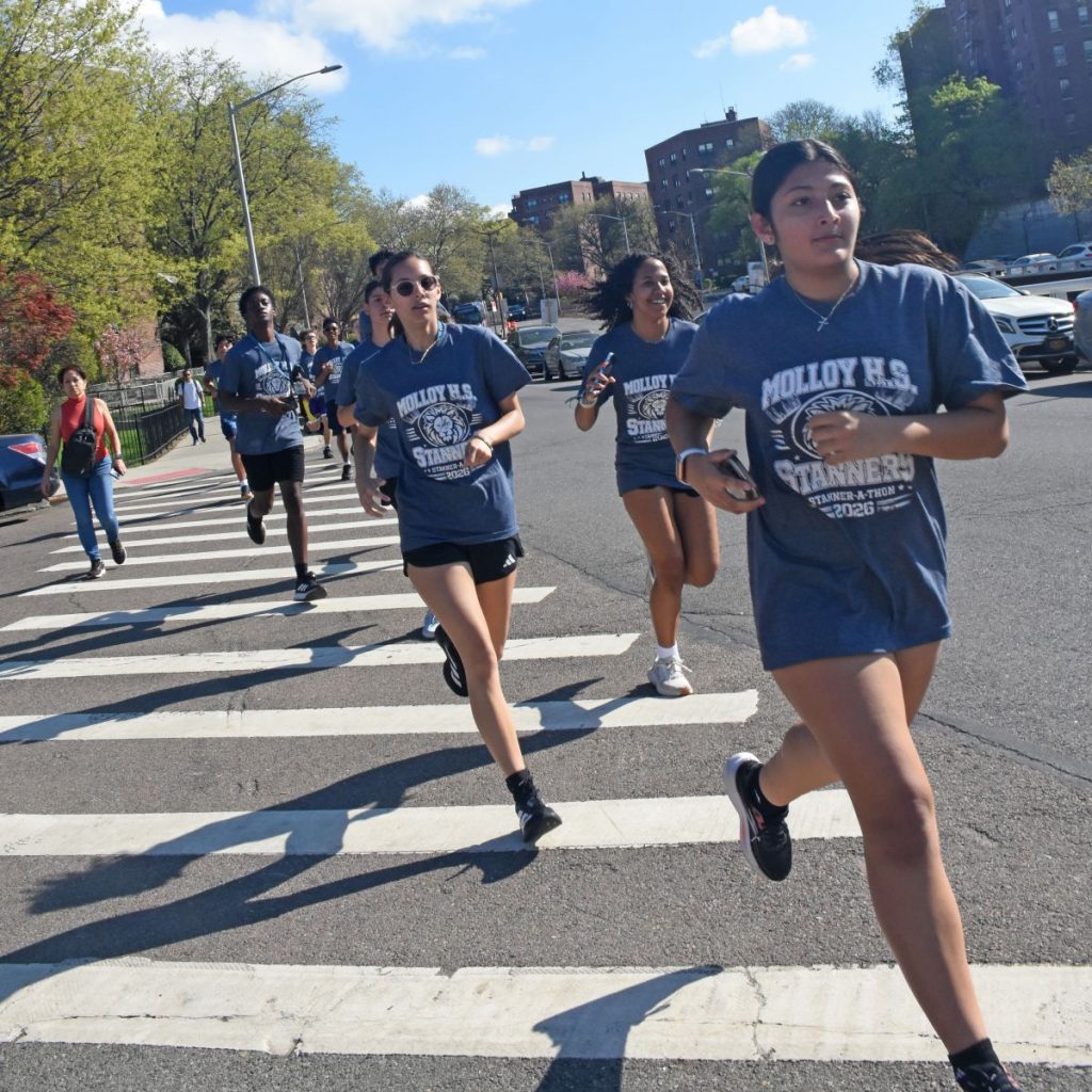 On Friday, April 17th, students and faculty participated in Molloy’s annual Stanner-A-Thon! Previously known as the Walk-A-Thon, this school-wide fundraiser supports capital projects and other important upgrades around Molloy. Projects that have been supported in the past include the full modernization of the Strength & Conditioning Center and Art Studio, the addition of air conditioning in all classrooms, the installation of new lighting and sound equipment in the Ralph DeChiaro Theater, and more!