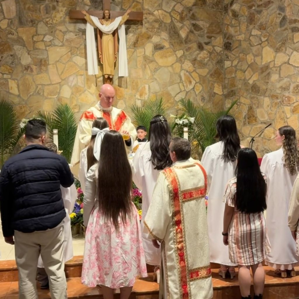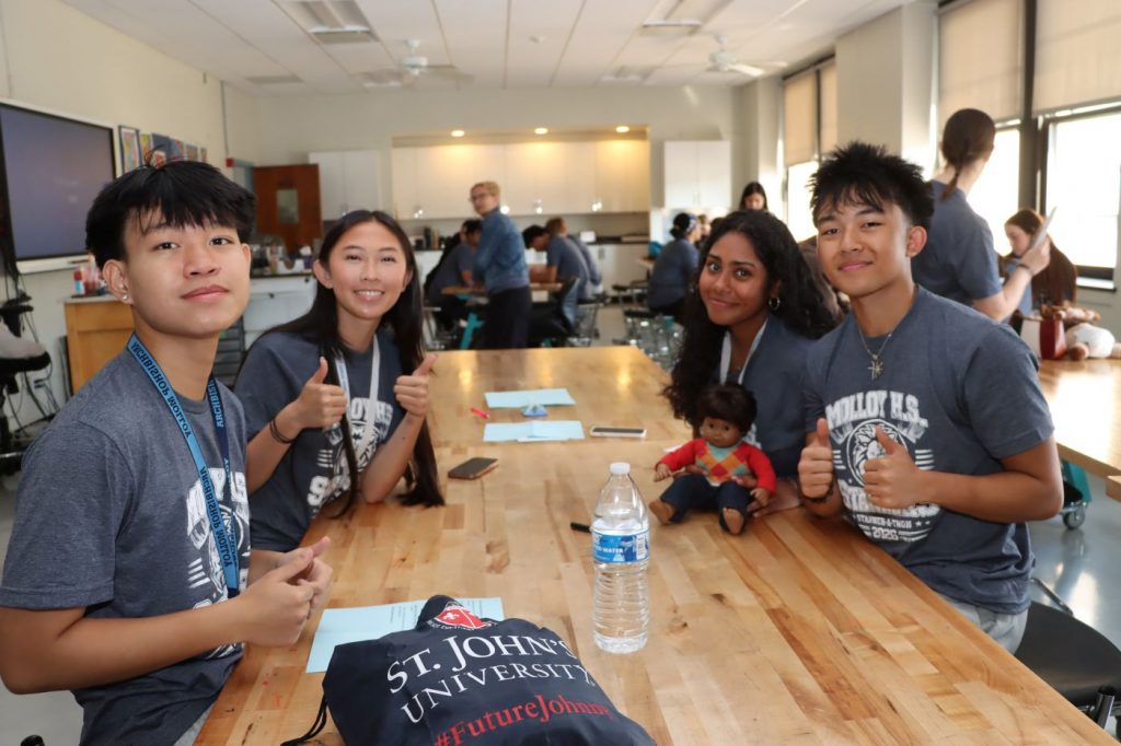 This year, Molloy’s Campus Ministry team offered an Order of Christian Initiation of Adults (OCIA) program, enabling students to become Catholic and receive their sacraments. 10 students signed up this year, with six recently receiving Baptism, Confirmation, and Holy Communion. Four more students will receive Confirmation with Bishop Robert Brennan in May. During the program, the participating students attend morning Mass each Thursday in Molloy’s Chapel, after which Fr. Colalella leads a catechism/faith discussion to prepare them for the eventual ceremonies.