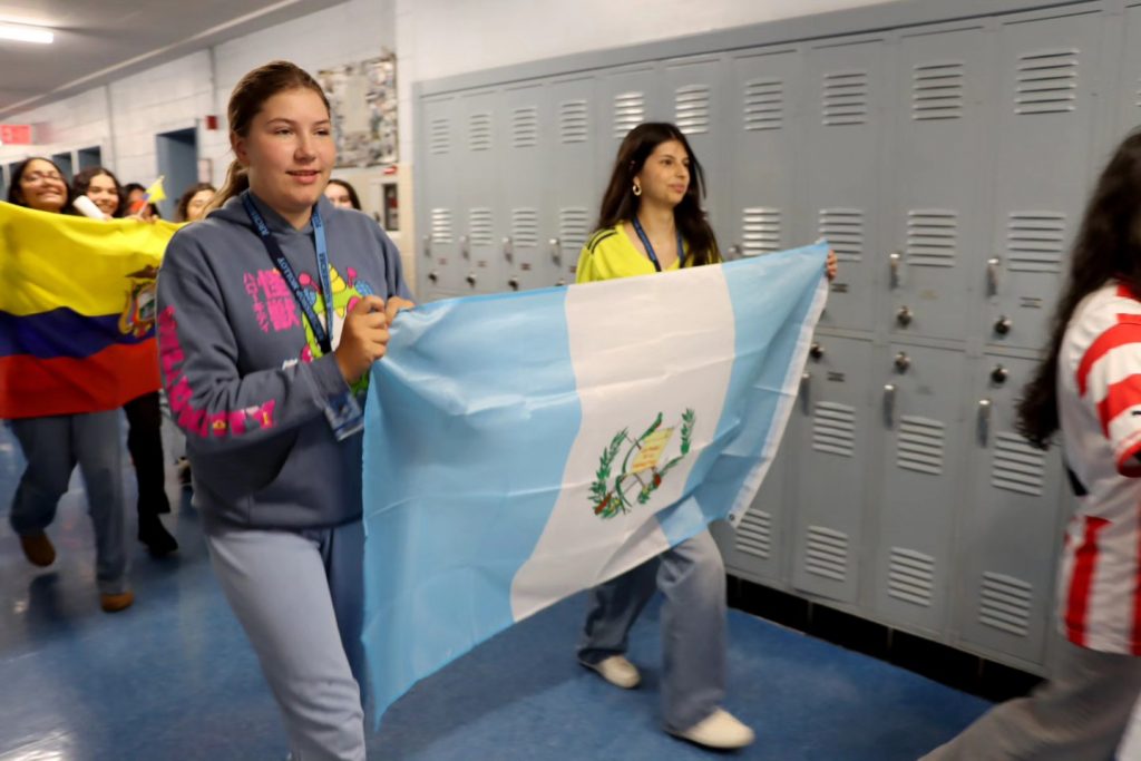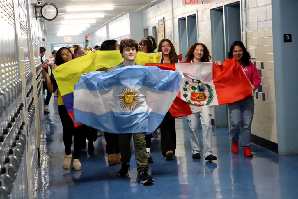 To close out Hispanic Heritage Month, members of Molloy’s Spanish Club continued their annual tradition by participating in a spirited hallway flag parade! During homeroom on October 10th, club members walked the hallways cheering, playing music, and waving flags in celebration of their cultural heritages! Spanish Club also sponsored a dress-down that same day, during which all Stanners were encouraged to donate $5 to participate. All money raised will help provide support, including extra food, to families and teachers at Marist schools in Venezuela.